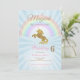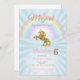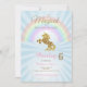 Les invitations à l'anniversaire de la licorne ont une licorne brillante en or. L'arrière - plan est bleu et il a un arc-en-ciel ! Ces invitations disent "Une journée magique est en route !"