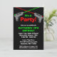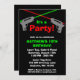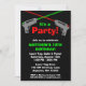 Une invitation orientée de fête d'anniversaire d'étiquette de laser d'amusement. Montré en rouge, vert et noir. Perfectionnez pour la partie d'étiquette du laser d'un enfant ! Personnalisez facilement pour votre événement.