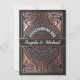 Feuille d'or rose d'invitations de partie de fiançailles sur le noir. Rétro style vintage chic de cuivre d'affiche de damassé de Deco