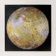 Io ist der gelbe Vulkanmond des Jupiter. Gelb ist Schwefel, Schwarz und Orange sind Vulkane.