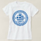 IOS, T-Shirt pour femmes de Grèce avec le drapeau national de la Grèce à l'intérieur d'un symbole de cercle motif grec antique. Profitez de porter ce T-shirt pendant que vous êtes en vacances sur la belle île d'IOS ou offrez-le comme souvenir cadeau.
