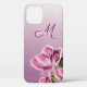Monogramm und Aquarellviolett-Freesia-Blume iPhone 12 Fall