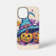 Ein niedlicher Hexenhut mit Kürbissen und Blätter, Pastellfarben, das Kunstwerk wird von Van Gogh inspiriert.