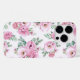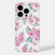 iPhone 14 pro Gehäuse wird in einem schönen rosa Rosenprint gezeigt. Passen Sie diesen Fall an oder kaufen Sie, wie es ist.