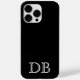 iPhone 14 pro max Gehäuse wird in der soliden Farbe Schwarz mit Initialen gezeigt. Passen Sie diese Groß- und Kleinschreibung an, und ändern Sie die Buchstaben in Ihre.