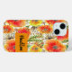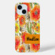 iPhone 15 Coque avec des fleurs orange et jaune et des plantes, avec une touche de fausse parties scintillant or. Merci à Hungryjpeg et Creative Fabrica pour certains des éléments du design. Le nom sur le téléphone peut être changé.