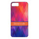 Dieses personalisierte iPhone 7 Gehäuse hat ein abstraktes geometrisches Rautenmuster in den Farben des Regenbogens. Fügen Sie Ihren Namen, Initialen, Monogramm oder anderen Text hinzu.