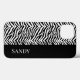 Dieses iPhone-Gehäuse wird in einem Tierzebradruck mit einem benutzerdefinierten Beispielnamen angezeigt. Passen Sie dieses Element an und ändern Sie den Namen in Ihren Namen. Börsenbild vecteezy.com