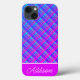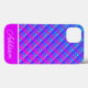Dieses iPhone Gehäuse zeichnet sich durch einen blauen und lila Farbverlauf kariert mit einem dicken lila Streifen und einem dünnen weißen Streifen mit einem anpassbaren Namen aus.