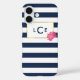 iPhone Case für Navy Stripe & Pink Peony Monogram