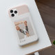Schützen Sie Ihr Handy stilvoll und zeigen Sie Ihren furchteinflößenden Freund! Dieses personalisierte iPhone-Gehäuse zeichnet sich durch ein sanftes pastellrosa Design mit einem individuellen Foto-Rahmen und einem eleganten Namensskript am unteren Rand aus.