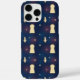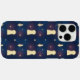iPhone Gehäuse mit sternenförmigen Nachtmustern. Mit roten und blauen Lichtern, Messern und Schlüsseln auf dunkelblauem (Marine) Hintergrund.