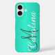 Verre de métal brossé Turquoise personnalisé avec votre nom et monogramme. Boîtier mobile iPhone 16.