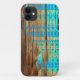 blauer aztekischer Musterdruck iPhone Falles auf Holz.