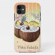iPhone 11 Fall mit einem Coconut Pina Drink Design mit Ananas, Peitsche Creme und Schirme. Der Hintergrund ist in Pastellgelb und Orangen gemischt. Dank der Hungryjpeg und Creative Fabrica für einige der Elemente im Design.