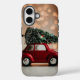 Ein niedliches Auto trägt einen Weihnachtsbaum