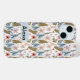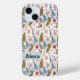 iPhone 15 Fall mit einem hübschen rosa, weiß und aquamarinen tropischen Blumendesign. Der Name des Falls kann geändert werden. Dank Design Cuts für einige der Elemente im Design.