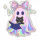 Iridescent ghost with a book and a black cat Class Aufkleber