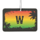IRIE Grunge Silhouette Palmen Auto Lufterfrischer. Es verfügt auf beiden Seiten über einen roten, gelben und grünen Hintergrund für Sonnenuntergänge und auf der Rückseite ein Monogramm, in dem Sie Ihre eigene Anfangsversion hinzufügen können