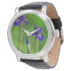 Uhr, Vintage Männeruhr mit schwarzem Lederarmband