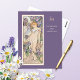 Eine Postkarte mit der Vintagen Illustration von Alphonse Mucha aus der Blume Series, Iris (1898), die digital restauriert und verbessert wurde. Ein Portrait einer Frau in einem Abend, umgeben von Lavendel-Iris-Blüten.