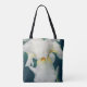 Blumenbeete Tote Tasche mit einem Foto großer weißer Iris nach Regen. Elegantes Geschenk für Freunde oder Familienmitglieder, heller boho Stil Akzent für Ihr Outfit. Sie können den Text "Nach dem Regen kommt das Wetter" löschen oder durch eine eigene Nachricht ersetzen ("Personalisieren Sie diese Vorlage"). Für weitere Änderungen (Schriftart, Schriftart, Textposition) klicken Sie auf "Design bearbeiten".
