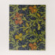 Dieses Design zeichnet sich durch einen Ausdruck eines Stoffdesigns aus, das von dem britischen Künstler William Morris (1834-1896) entworfen wurde, der mit der Kunsthandwerksbewegung assoziiert ist. Es zeigt blaue und orangefarbene Iris-Blume in einem elegant symmetrischen Muster. Die Blume ist nach Iris benannt, der die griechische Göttin des Regenbogens und ein Bote für die olympischen Götter war, der Botschaften an die Menschheit trug. Die Blätter und Stiele der Iris-Pflanze sind blau und grün dargestellt. Einige gelbe Vögel stehen auf dem Blätterteig der Pflanze. Das ursprüngliche Muster wurde 1887 von William Morris entworfen.