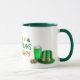 Hier ist eine lustige Tasse für St Patrick's Day, oder nur für jeden, der stolz auf Irisch ist! Der stilisierte Text in der Mitte sagt "Prone to Shenanigans & Malarkey" in gold und grün, mit zwei Kleeblättern. Das Bild auf beiden Seiten des Textes besteht aus einem grünen Hut, Goldmünzen und natürlich einem Glas grünem Bier. Niedlich!