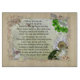 Ein beige Rahmen mit Blumen, Schmetterlingen und Klee enthält einen irischen Haus-Segen. "Segnen Sie diesen Lord des Haus-O, wir beten. Machen Sie es sicher bis zum Nacht und Tag. Segnen Sie diese Wände also Unternehmen und Stout, behaltend wollen Sie und beunruhigen Sie heraus. Segnen Sie das Dach und der hohe Kamin, ließ thy Frieden über allen liegen. Segnen Sie die Türen, denen sie überhaupt offenes zur Freude und zur Liebe prüfen können. Segnen Sie das Fensterglänzen hell und im himmlischen Licht des Gottes lassen. Segnen Sie den Herd, der dort ein-glüht, wenn der Rauch wie ein Gebet aufsteigt. Segnen Sie die Leute hier innerhalb"