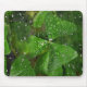 Nah aus einem Kleeblatt Blätter durch ein Fenster mit Regentropfen betrachtet.