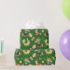 A Colorful Green Wrapping Paper Design in Golden Horseshoes, Pots Of Gold. Balloons, and Cats