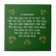 This decorative tile features a shamrocks design with a traditional Irish blessing. A nice addition to your kitchen, or to commemorate Ireland on St Patrick's Day or any day of the year.
