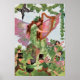 Glücklicherweise vierblättriges Kleeblatt sie ihr Kleid bedecken und Leprachauns tanzen um die Schmetterlingsfee herum, während sie in dieser Vintagen viktorianischen Kindergeschichten-Illustration die Harfe spielt.