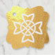 Dieses hängende Geschenkschild ist eine goldene Folie auf der Vorderseite mit einem weißen irischen keltischen Knoten-Symbol mit verflochtenen Schleifen. Der Rücken ist schwarz. Passen Sie Ihren Text auf der Rückseite mit den Vorlagen an.