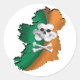 IRISH STICKER. IRISH FLAG. ST PATRICKS IRISH PIRATE FLAG AUF DER IRLANDS KARTE. Irlands Landkarte mit der Fahne /halb grün, halb orange) ein Schädel-Kleeblatt oben und Knochen.
