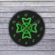 Image is my original drawing of a green Celtic knot. The green is vibrant against a black background. See my store Art by MAR for matching products with this design.