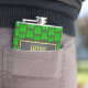 Das irische Medizin-Design zeichnet sich durch ein Muster von vierblättrigen Kleeblatten auf dunkelgrünem Hintergrund aus. Das schwarze Etikett auf der Vorderseite hat eine gelbe Naht und einen Bereich, den Sie anpassen können.