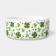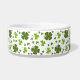 Grün und Weiß Irisch Thema Glück vierblättriges Kleeblatt / Kleeblatt Hund Schüssel mit dem Namen Ihres Hundes. Vollständig bearbeitbarer Text, einschließlich Schriftart Farbe und Stil. Zeigt sich der Name, Lucky.
