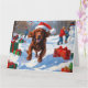 Irish Red Setter Running Snow mit Weihnachtshut Karte