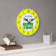 Diese lustige Wanduhr liest, dass ich nicht zu spät bin, ich bin in irischer Zeit, mit keltischen Knüpfarbeiten Buchstaben in grün, rückwärts Zahlen auf gelbem Hintergrund