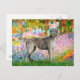 Der Garten von Claude Monet in Giverney, der an einen irischen Wolfhound angepasst wurde, war in Wirklichkeit Monets Garten, voller farbenfroher Blume.