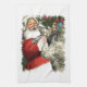 Irish Wolfhound Weihnachtskunst mit einem Wolfshund begrüßt den Weihnachtsmann am Kamin am Heiligen Abend. Schöner Druck auf eine Vielzahl von Urlaubsgeschenke Ware.