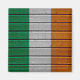 Kühlschrankmagnet mit der irischen Tri-Fahne auf einer Holzplankstruktur.