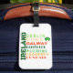 Das Gepäckanhänger zeigt eine Grafik im Subway-Stil, in der die besten Städte Irlands in verschiedenen Schriftart und in irischer Themenfarbe aufgeführt sind