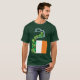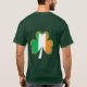 Eine Tasse gießt Kleeblätter in den grünen Teil der irischen Flagge. Auf der Rückseite ist ein Kleeblatt mit Irlands Flagge gefärbt.
