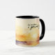 Die Kaffee-Tasse mit inspirierenden Zitat-Schriften zeigt ein wunderschönes naturfarbenes Design mit einem goldenen Sonnenuntergang über dem Wasser. Es enthält zwei ermutigende Bibelverse: eine aus Isaiah 41:10, "Fürchte dich nicht, dass ich bei dir bin." und die Deuteronomie 31:6, "Fürchte dich nicht, dass ich mit dir gehe."