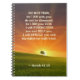 Inspirationskripturenheft, Zeitschrift zeigt einen schönen gelben orangen Sonnenuntergang über einem grünen Feld. Es enthält Bibel Verse Isaiah 41:10, "Fürchte dich nicht, denn ich bin bei dir; sei nicht bestürzt, denn ich bin dein Gott. Ich werde euch STÄRKEN und euch HELFEN; ich werde euch mit meiner rechten Hand UPHOLD."-