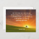 Inspirationsskriptur Postkarte zeigt einen wunderschönen orangefarbenen Sonnenuntergang über einem grünen Feld. Es enthält Bibel Verse Isaiah 41:10, "Fürchte dich nicht, denn ich bin bei dir; sei nicht bestürzt, denn ich bin dein Gott. Ich werde euch STÄRKEN und euch HELFEN; ich werde euch mit meiner rechten Hand UPHOLD."*