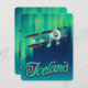Island Vintages Reiseplakat der Nordlichter und ein Leichtflugzeug, das vorbei fliegt.