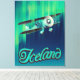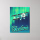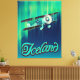 Island Vintages Reiseplakat der Nordlichter und ein Leichtflugzeug, das vorbei fliegt.